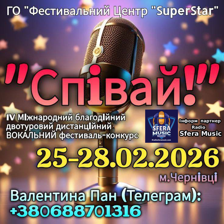 ГО «Фестивальний Центр «SuperStar» запрошує конкурсантів взяти участь у IV Міжнародному благодійному двотуровому дистанційному ВОКАЛЬНОМУ фестивалі-конкурсі